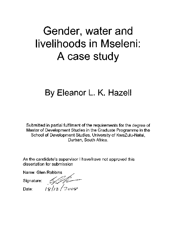 Pdf Gender Water And Livelihoods In Mseleni A Case Study Eleanor L K Hazell Academia Edu